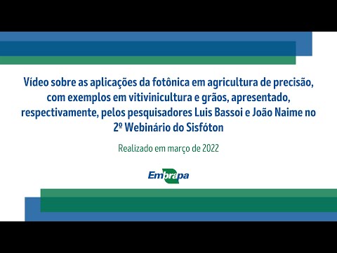 Vídeo sobre as aplicações da fotônica em agricultura de precisão, com exemplos em vitivinicultura e grãos, apresentado, respectivamente, pelos pesquisadores Luis Bassoi e João Naime no 2º Webinário do Sisfóton, real ... Mais...